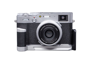 The strap slot on the corner of the base is fully recessed with no protruding parts, ensuring a smooth, unobstructed grip. The front and rear notches on the base allow direct mounting to a tripod or quick-release plate, and an optional compact L-plate can be added on the side for fast, convenient vertical tripod shooting.
